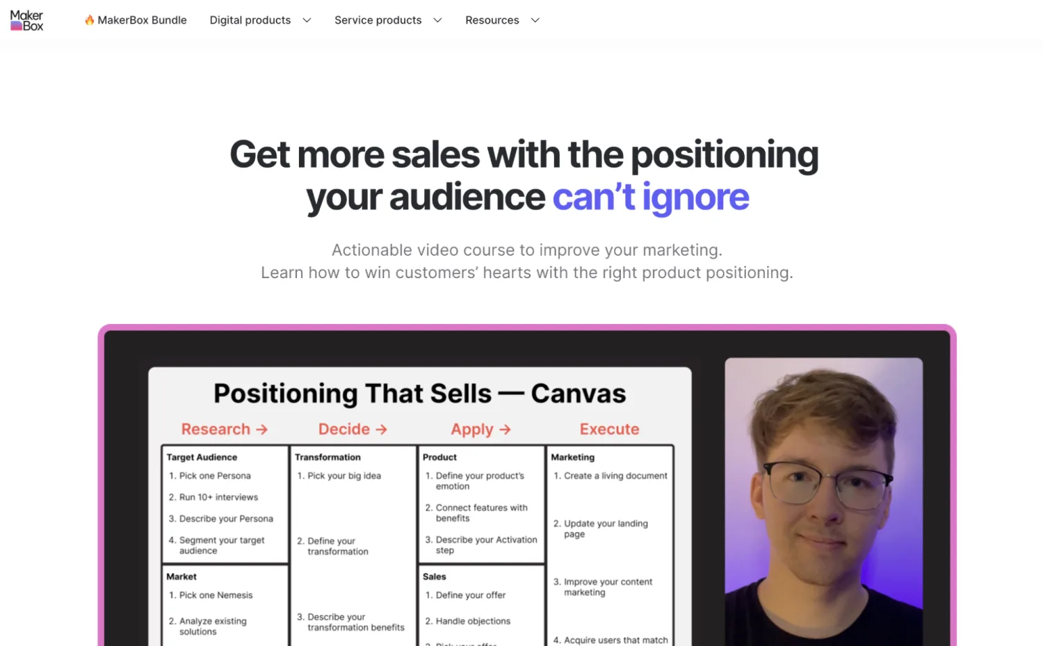 The powerful headline on the course sales page for the Positioning That Sells course by Dan Kulkov. Image via MakerBox.