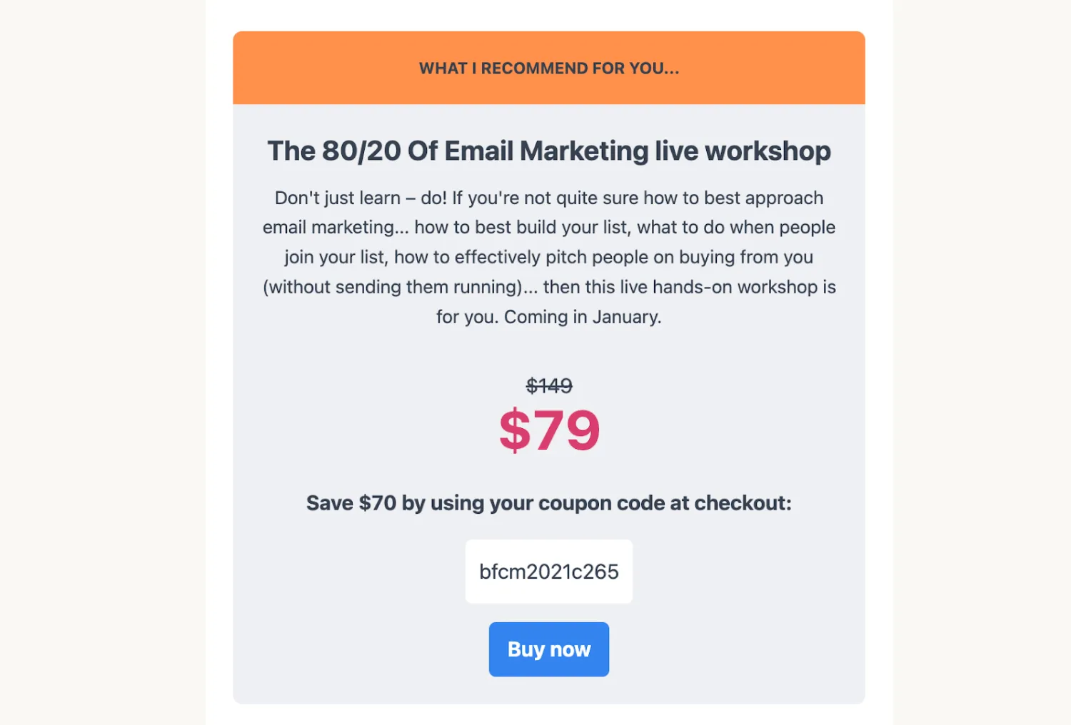 For example, you can show a promotional message for an online course to subscribers who haven’t purchased it yet. Those that did? They’ll see a call-to-action to check out a different but equally relevant and related product instead.