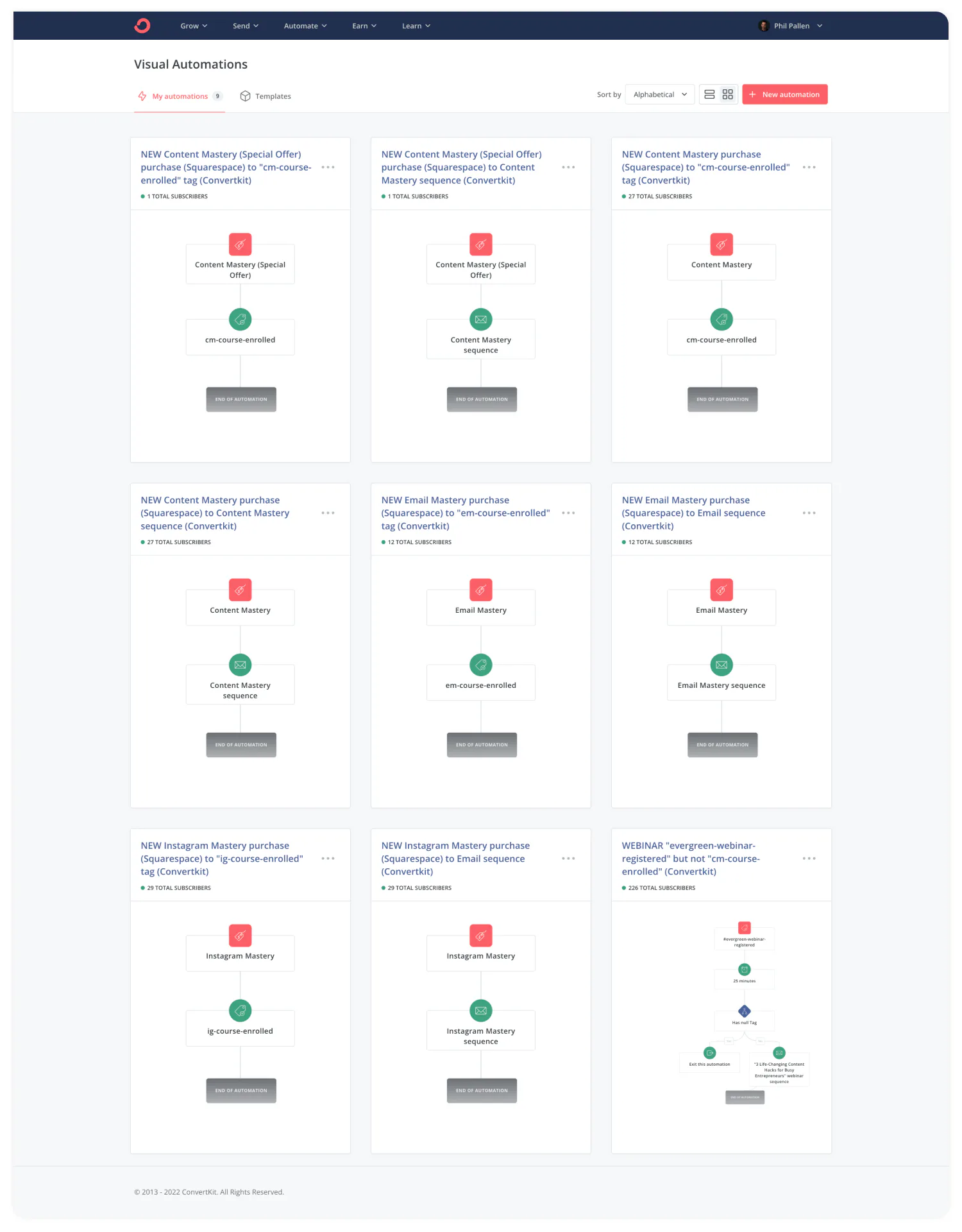 A snippet of the automations Phil uses to keep his audience engaged and grow his business.