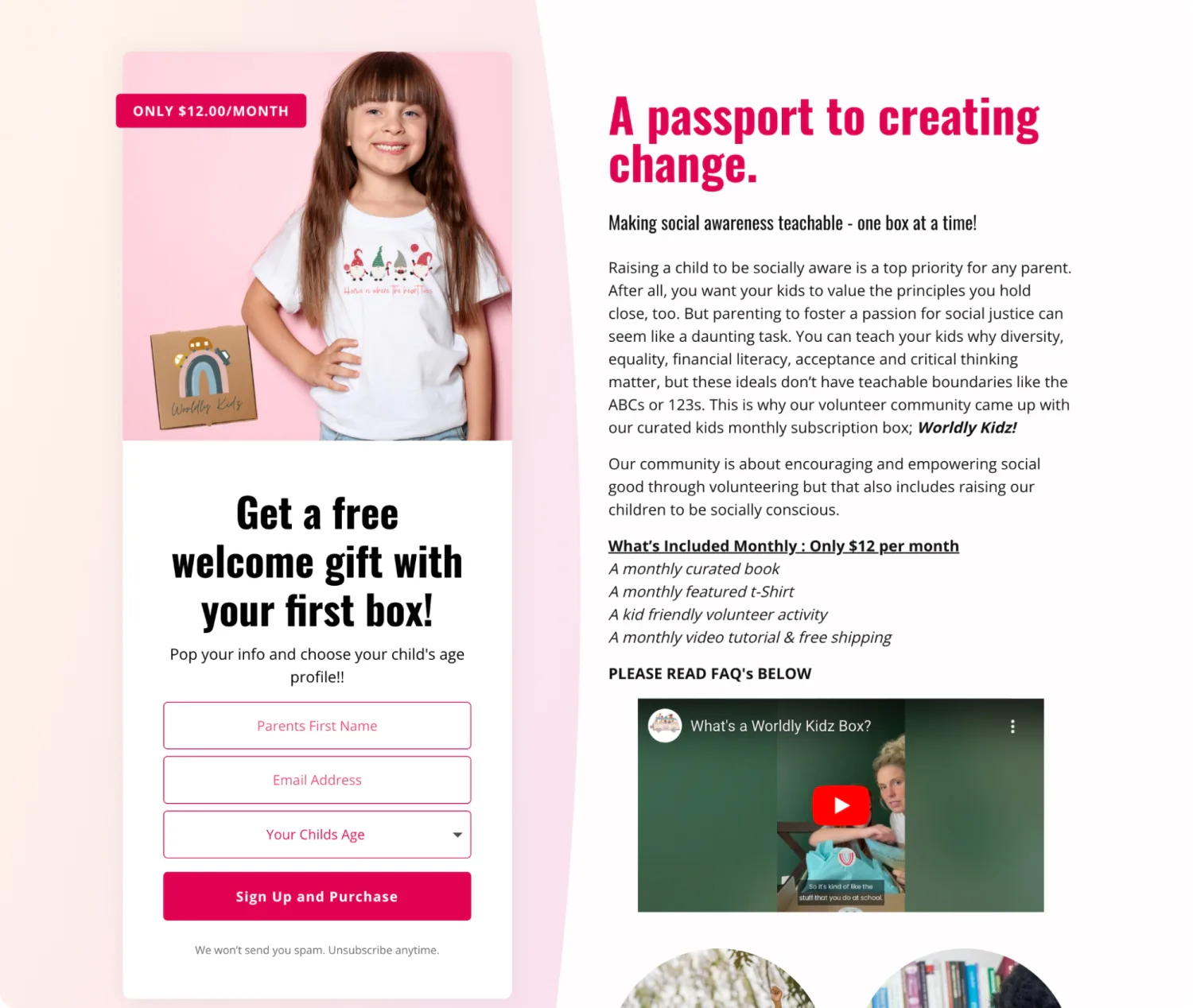 Use your sales page to describe what each box contains, the price, and other FAQs. Image via Worldly Kidz.
