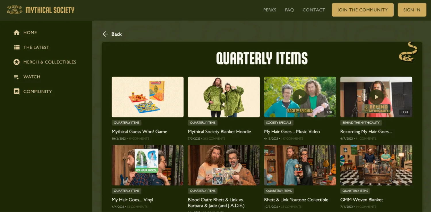 Limited-edition items incentivize paid subscription memberships. Image via Mythical Society.