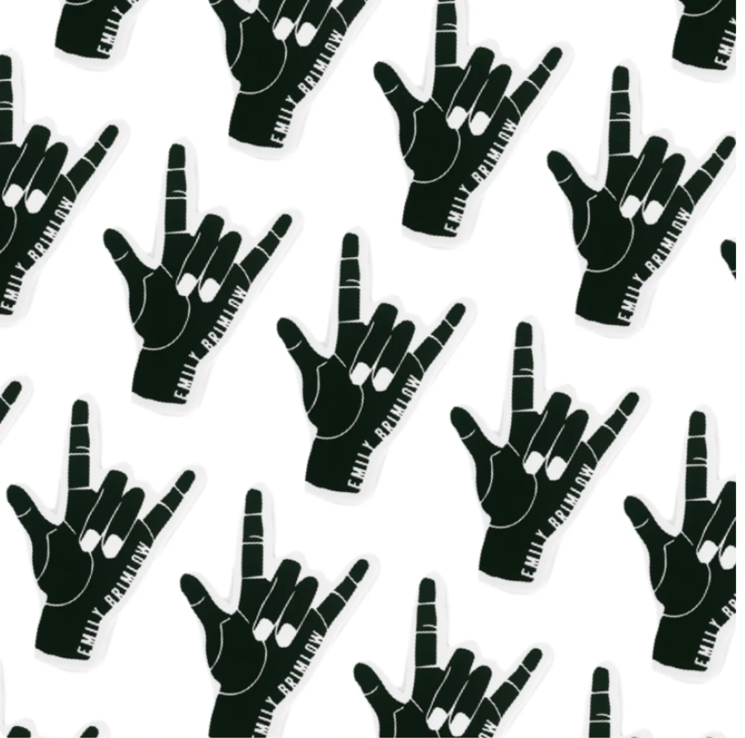 Emily Brimlow, a musician who crowdfunded her debut album, sells branded stickers on her website.