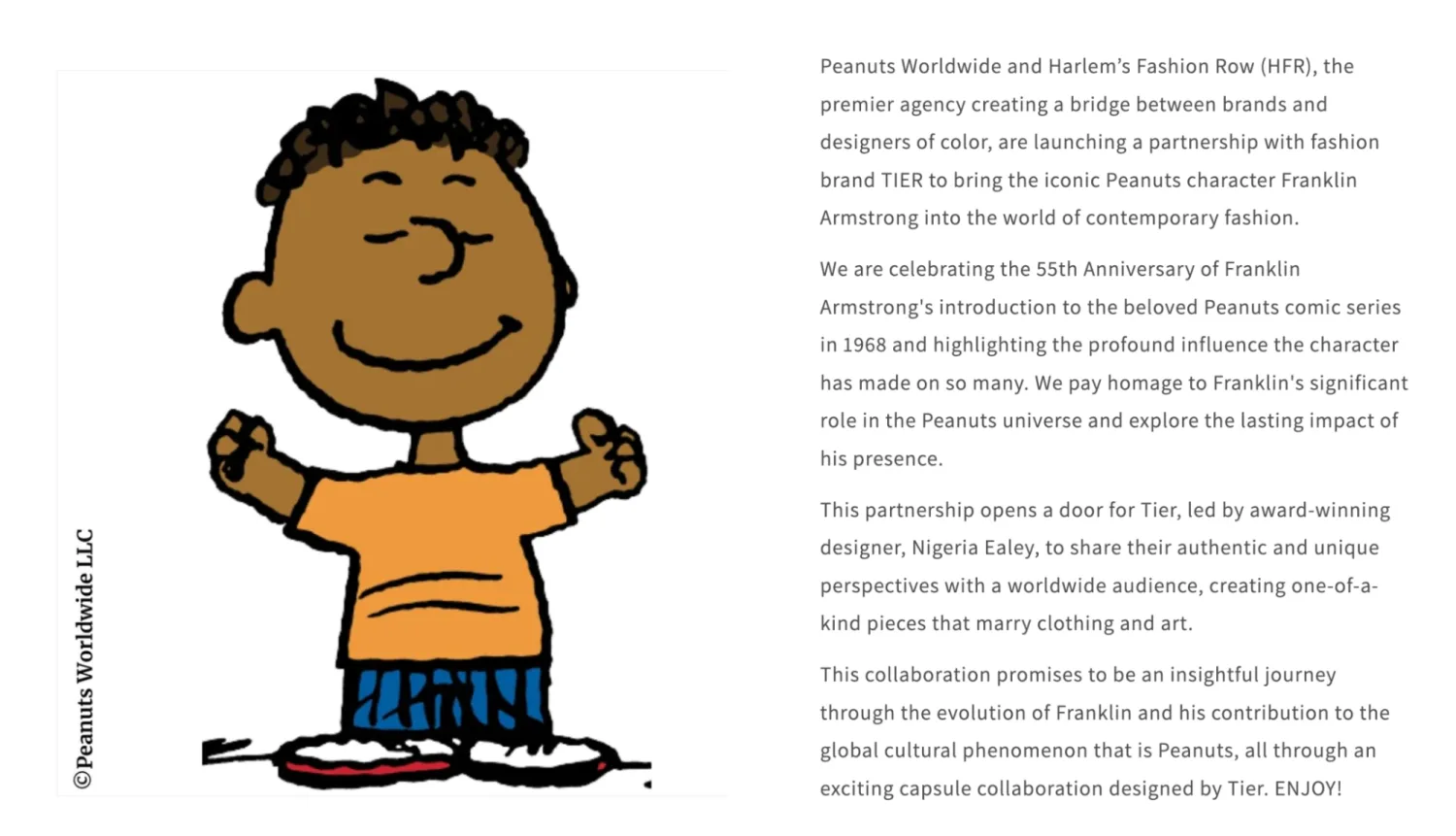 Brandice Daniel founded Harlem’s Fashion Row, an agency that connects brands with designers of color in fashion. Recently, HFR collaborated with TIER and Peanuts Worldwide on a limited-run merchandise line.