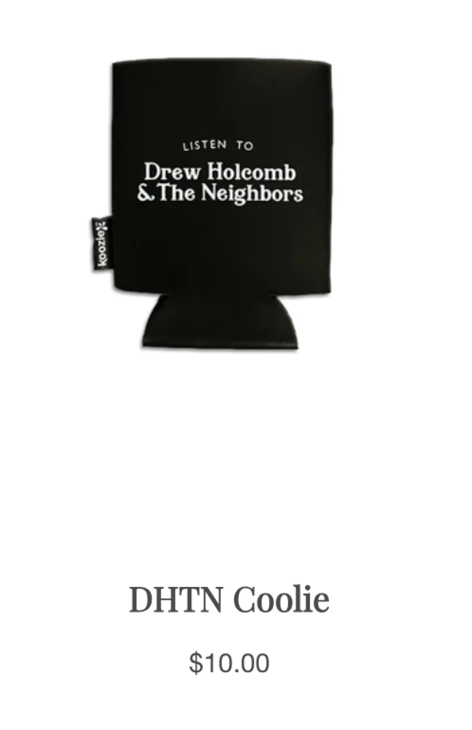 Musician Drew Holcomb of Drew Holcomb & The Neighbors offers branded can coolies alongside other merch in their online shop.