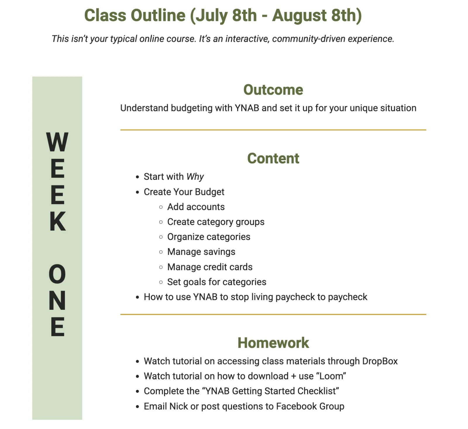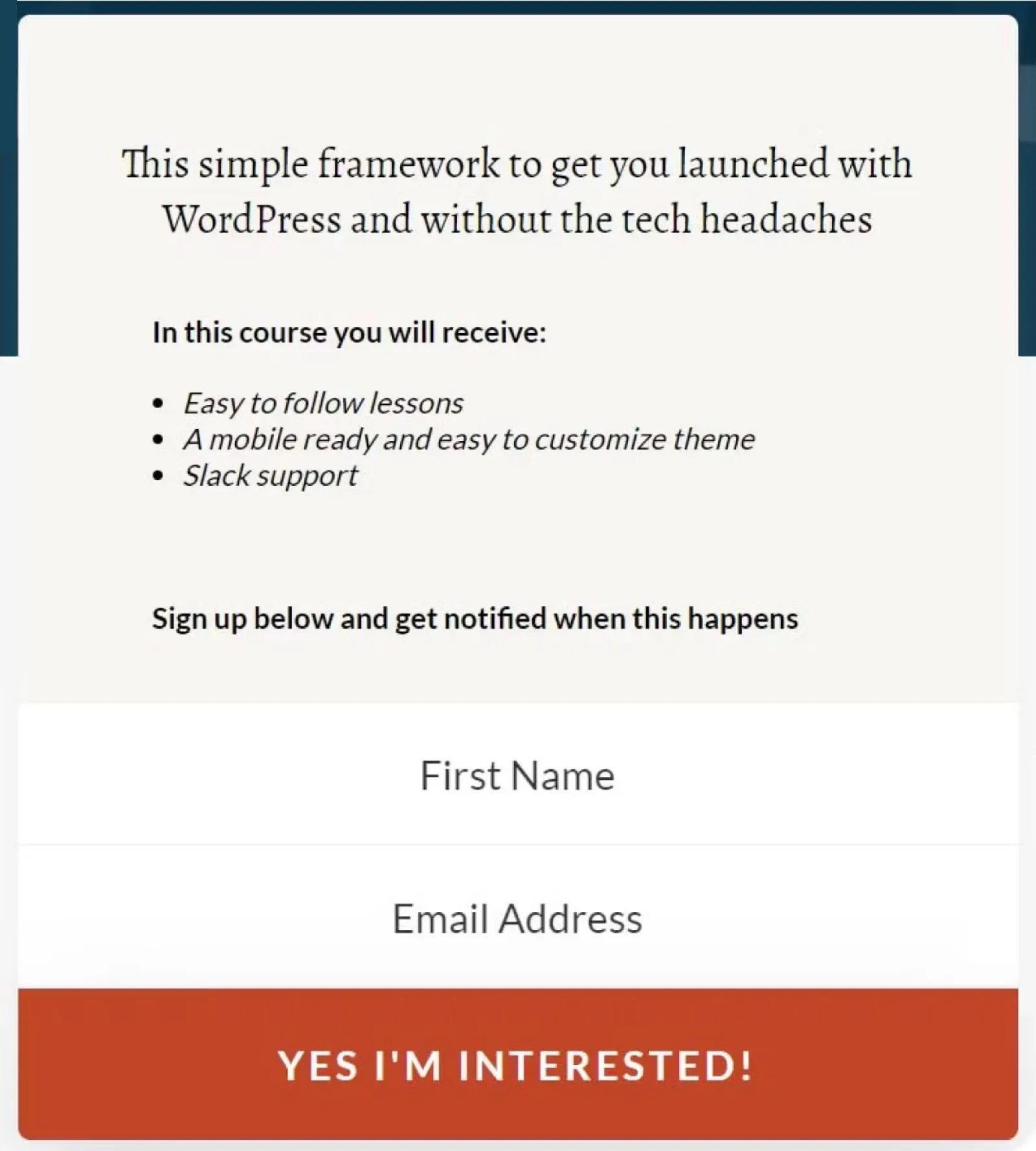 Tell students what format the course is in and what support is available. Image via the DIY Website Starter Course