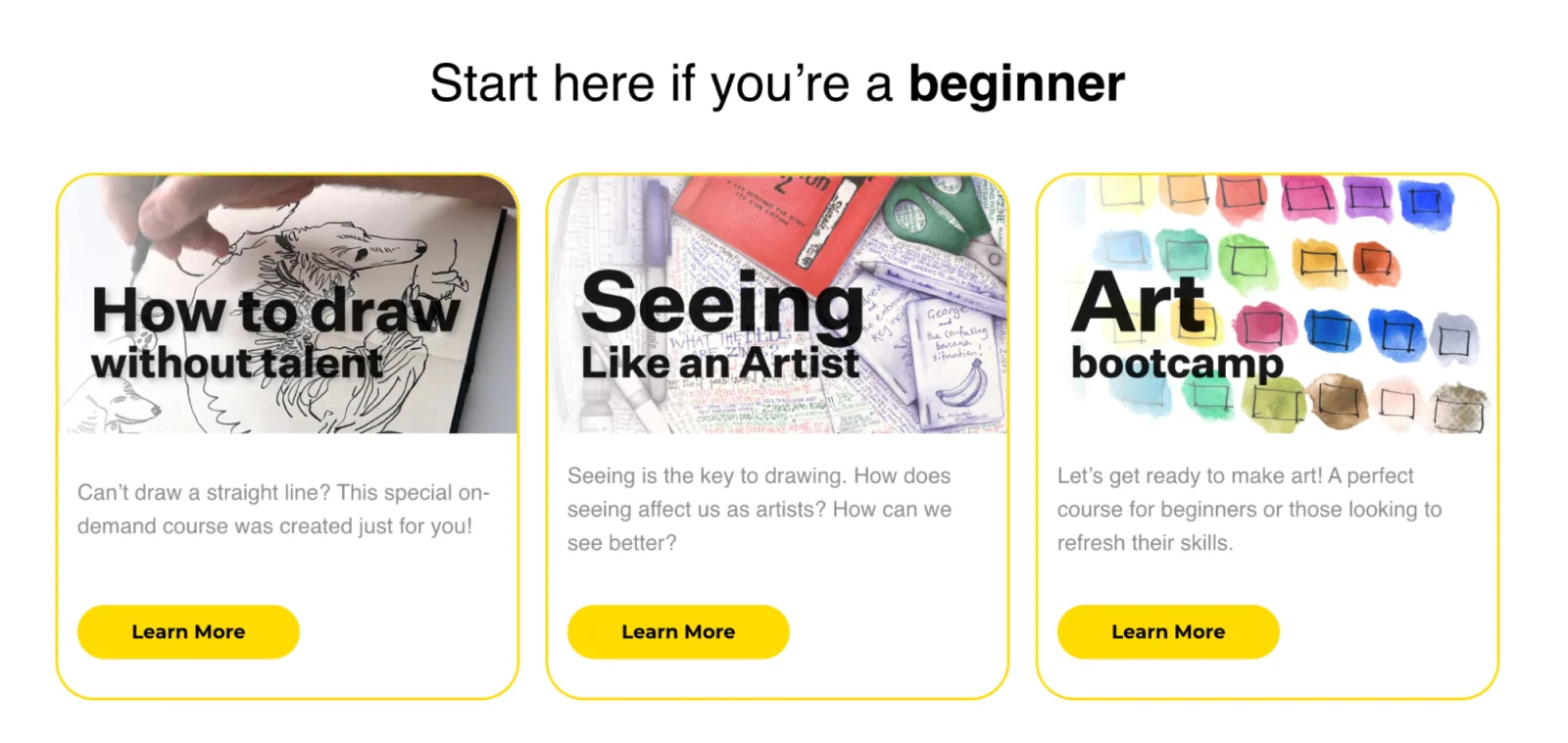 You can organize courses by skill level, interest, medium, or subject. Image via Sketchbook Skool. Image via Sketchbook Skool