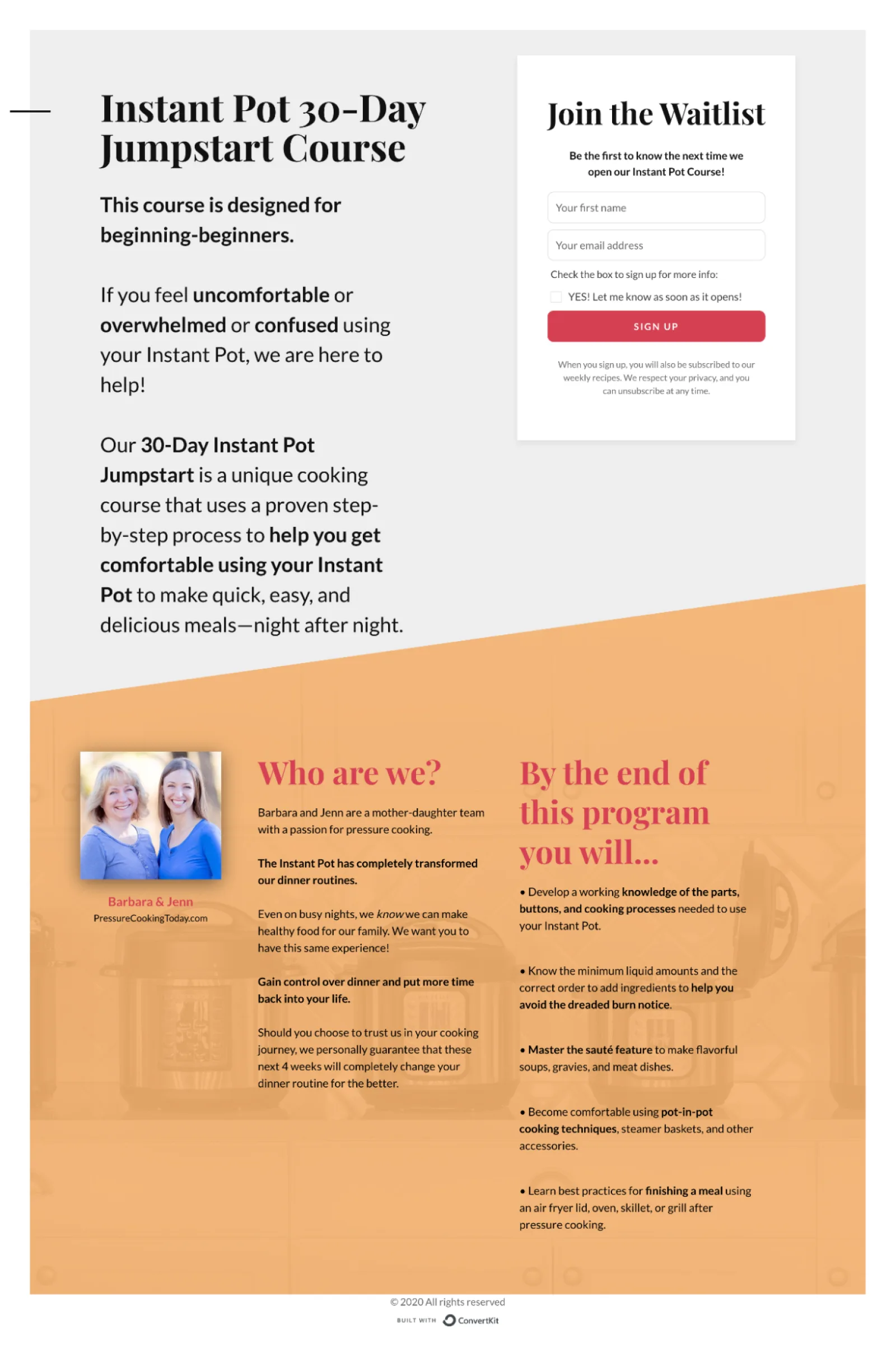 Listing course results gets students excited about where they’ll be after your content. Image via Pressure Cooking Today