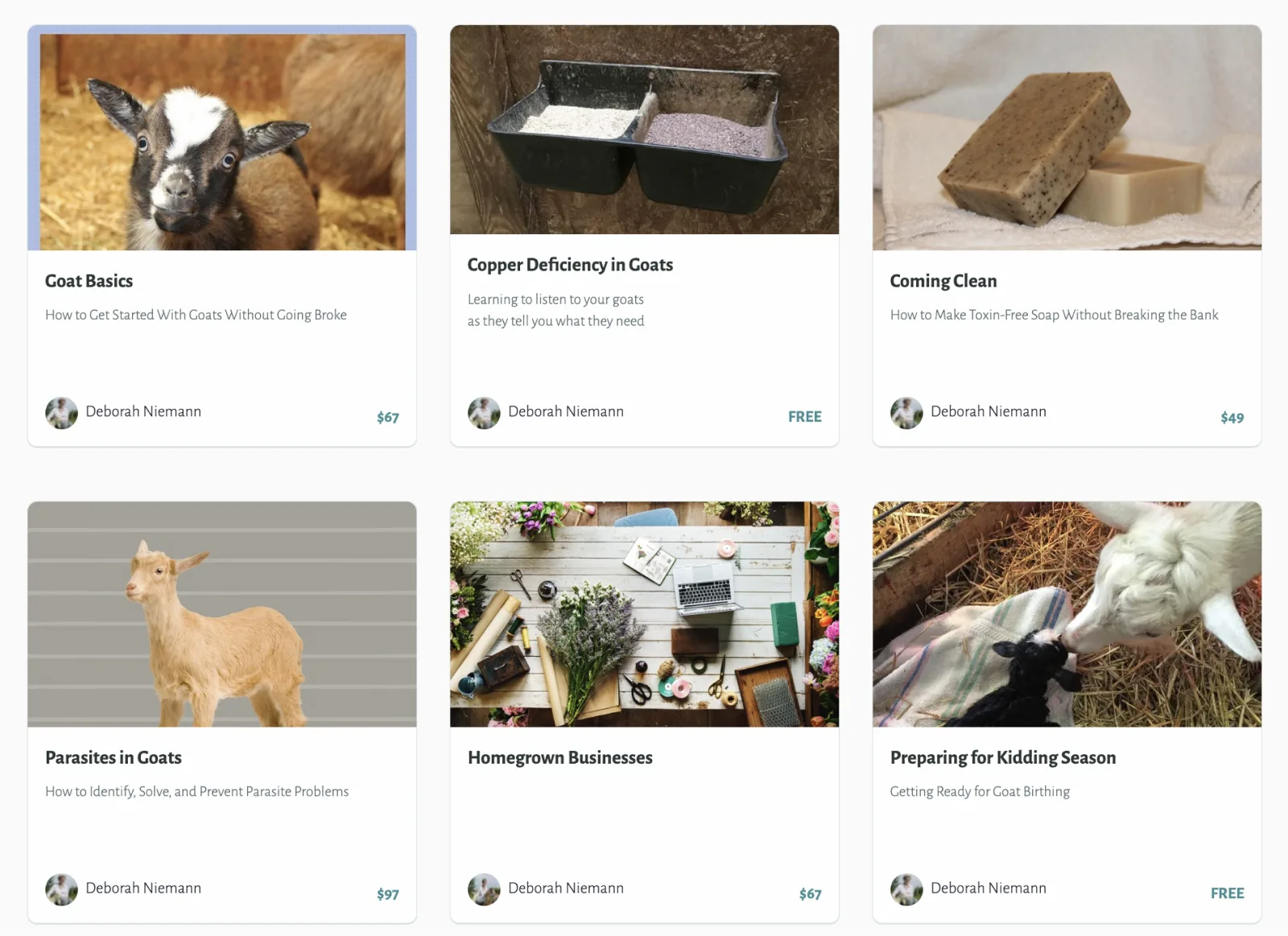 Homesteader and author Deborah Niemann uses courses like, Goat Basics, and Your First Garden, to generate 70% of her creator business revenue.