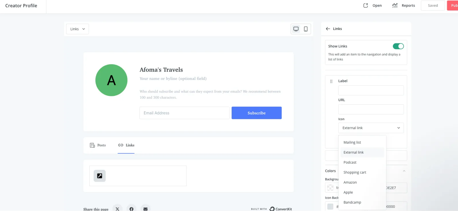 If you have social media accounts or a podcast you’d like to link to, you can do that easily on your profile.