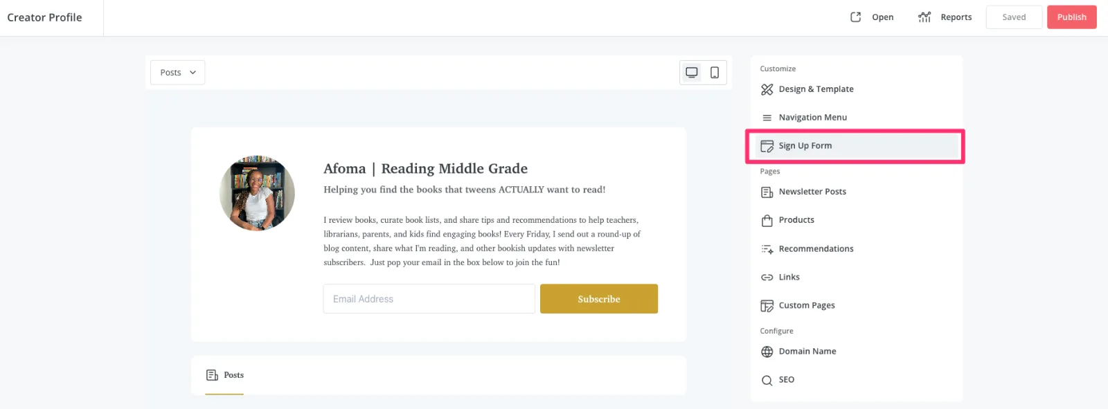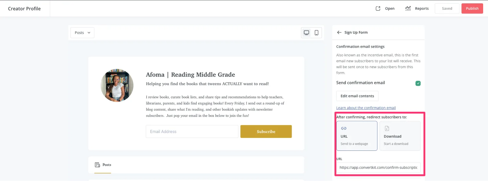 - Connect your landing page to your creator profile: Add your lead magnet to your Creator Profile sign up form so when visitors sign up from that form, they’ll also receive the incentive.