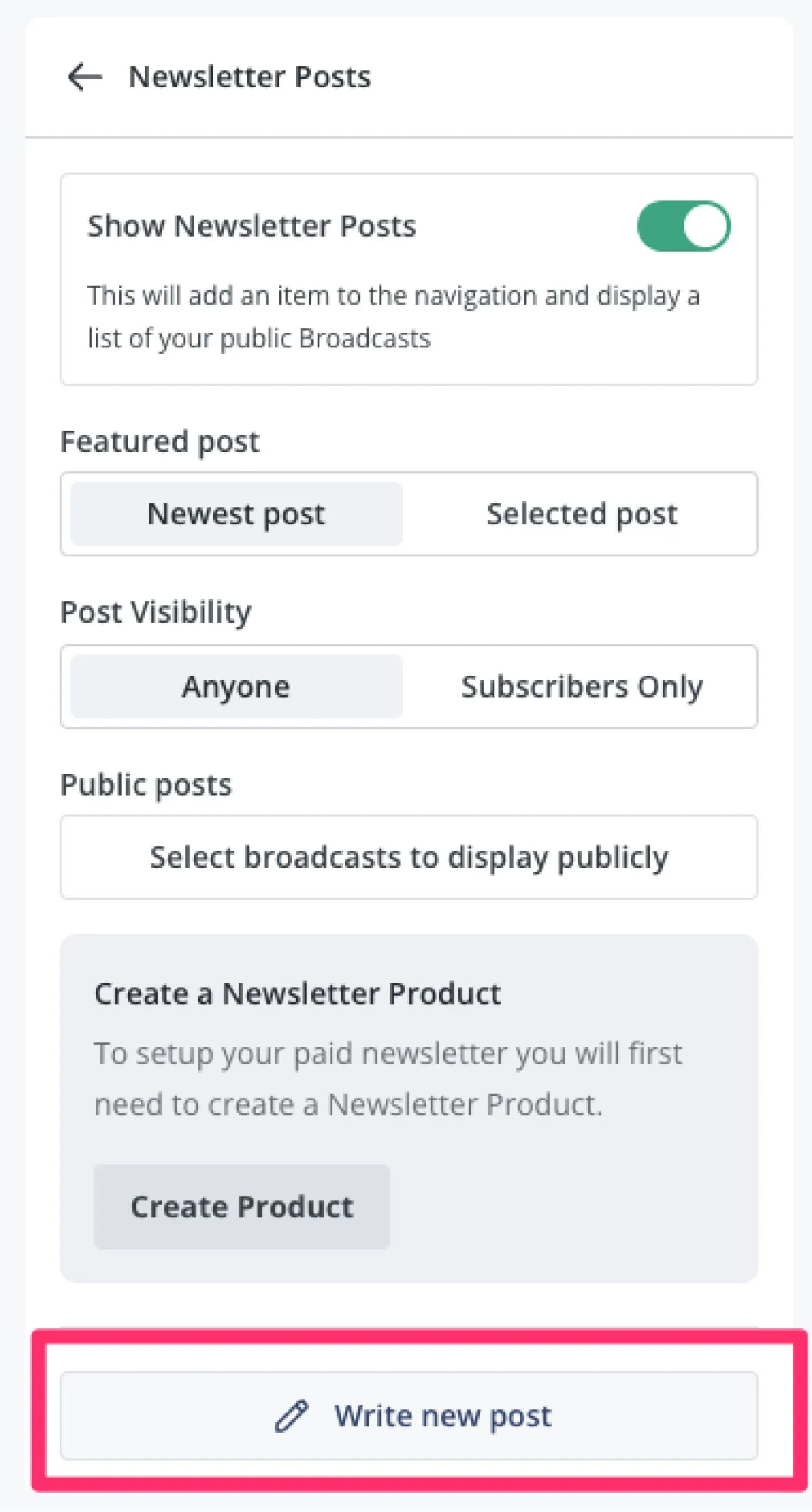 Then click Write new post. You’ll be redirected to create a new broadcast.