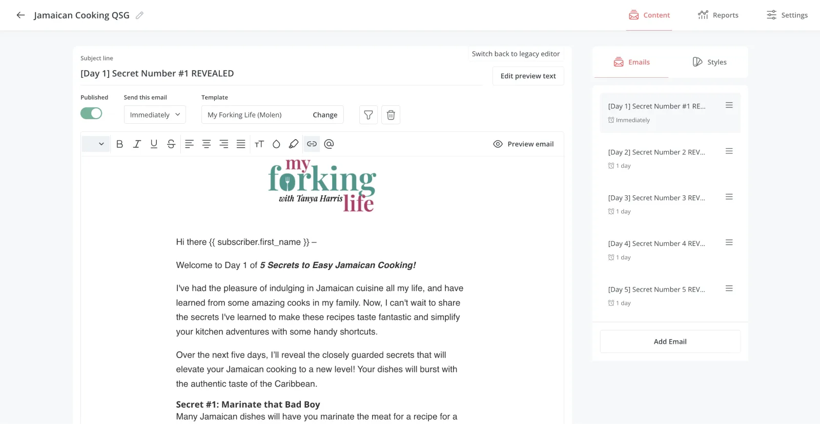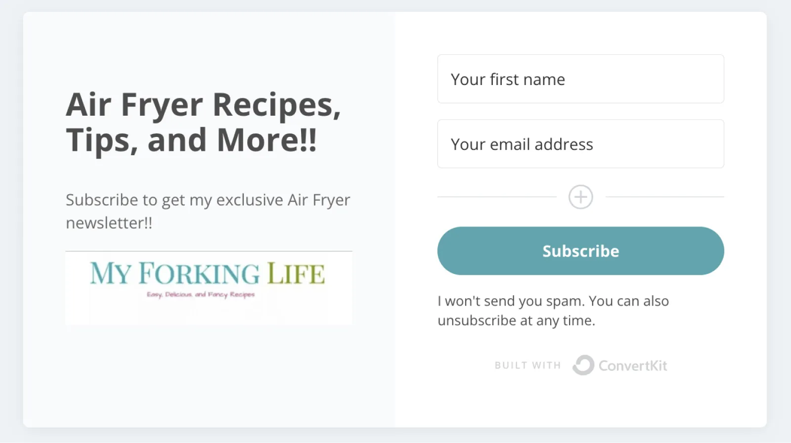 To gain more subscribers, and keep them, Tanya wanted to tailor her email opt-ins. Instead of having one general newsletter opt-in for everything, she wanted to create opt-ins like an automated air-fryer email course that popped up after people read her air-fryer recipes. She then wanted to segment her list based on those specific audience interests.