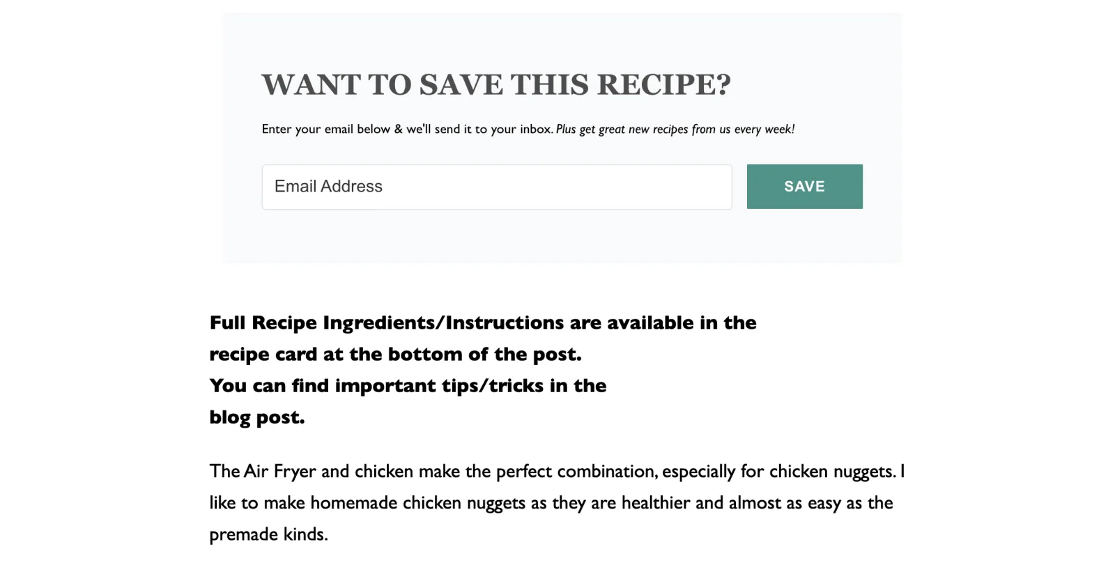 People love having the recipe title saved as a subject line in their inbox because it’s so much easier for them to search for it later when they’re ready to make it.