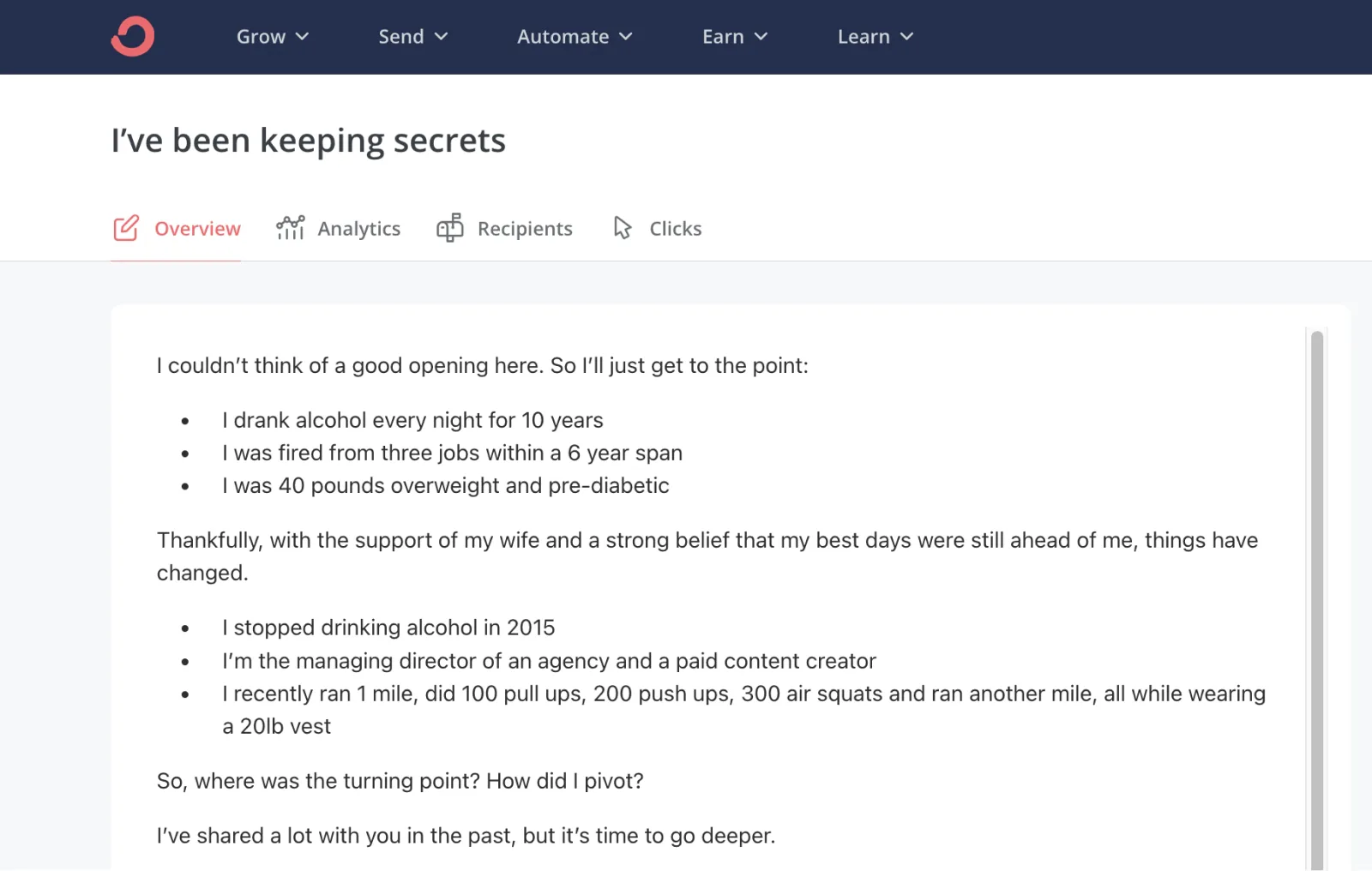 Leaning into his natural directness, however, really worked. It made writing his newsletters faster, and the people who subscribed resonated with his style because they could feel its authenticity.