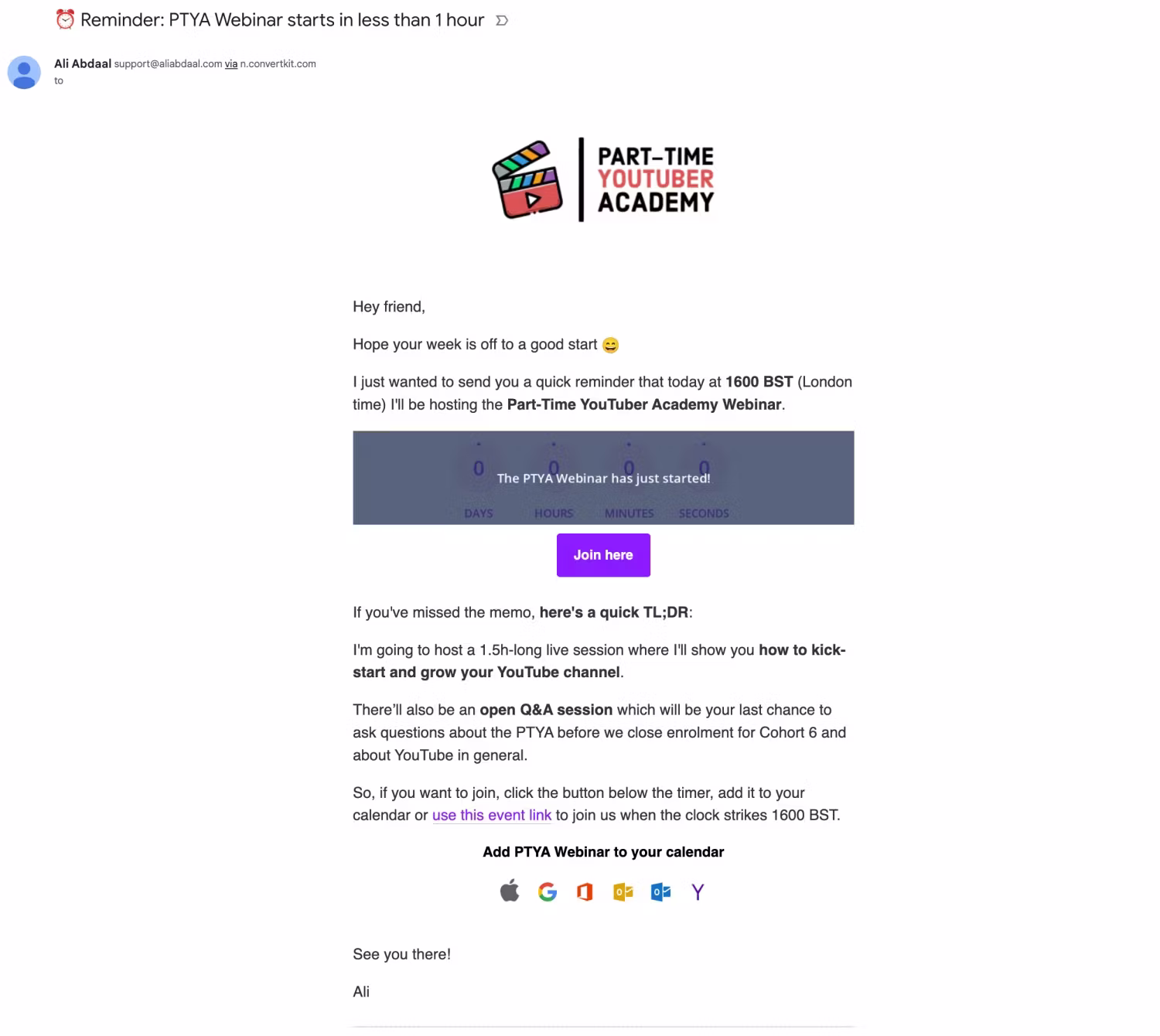 - I hope to see you in [webinar name] in [24 hours/an hour]
