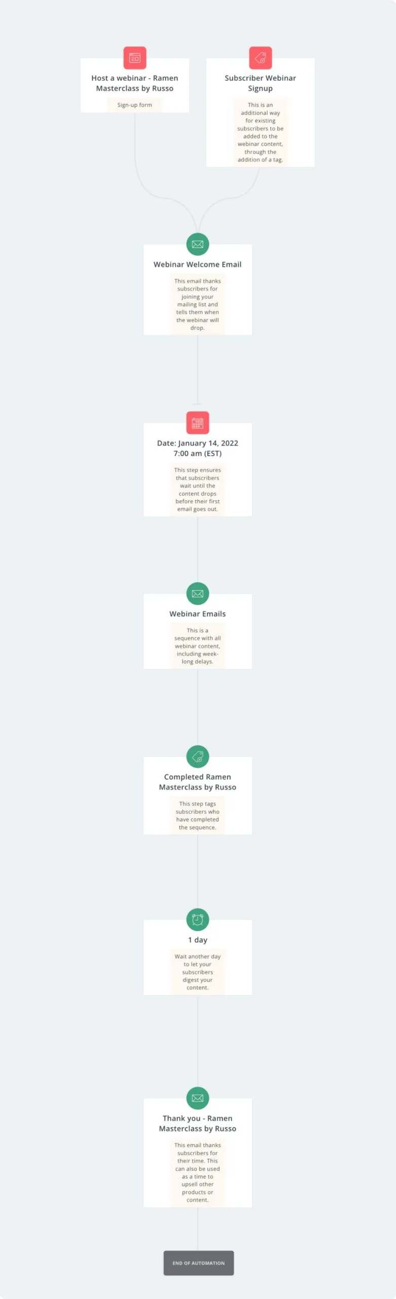 - Adjust the date of your webinar and any other timelines in the automation.
