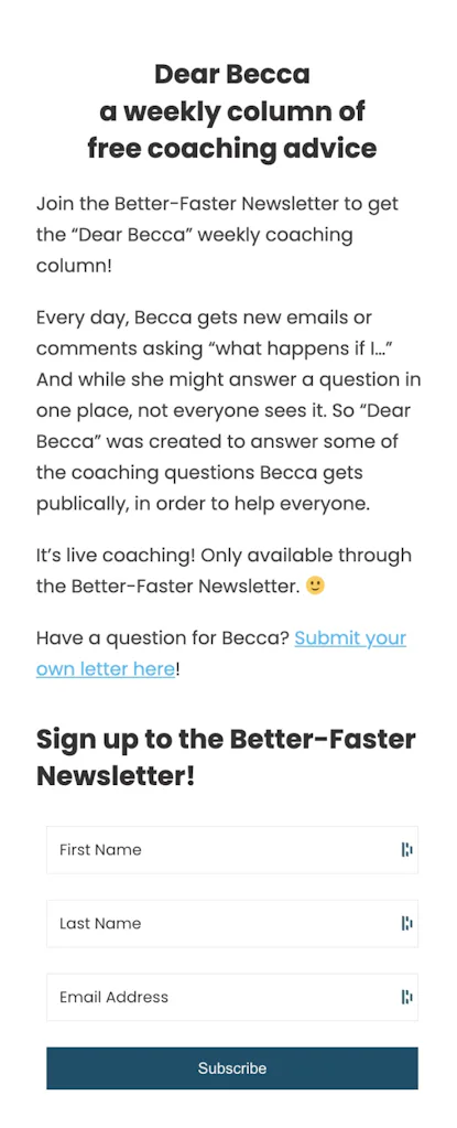 Becca also started the “Dear Becca” newsletter as a way to coach people for free since she didn’t have the bandwidth to coach everyone who wanted coaching.